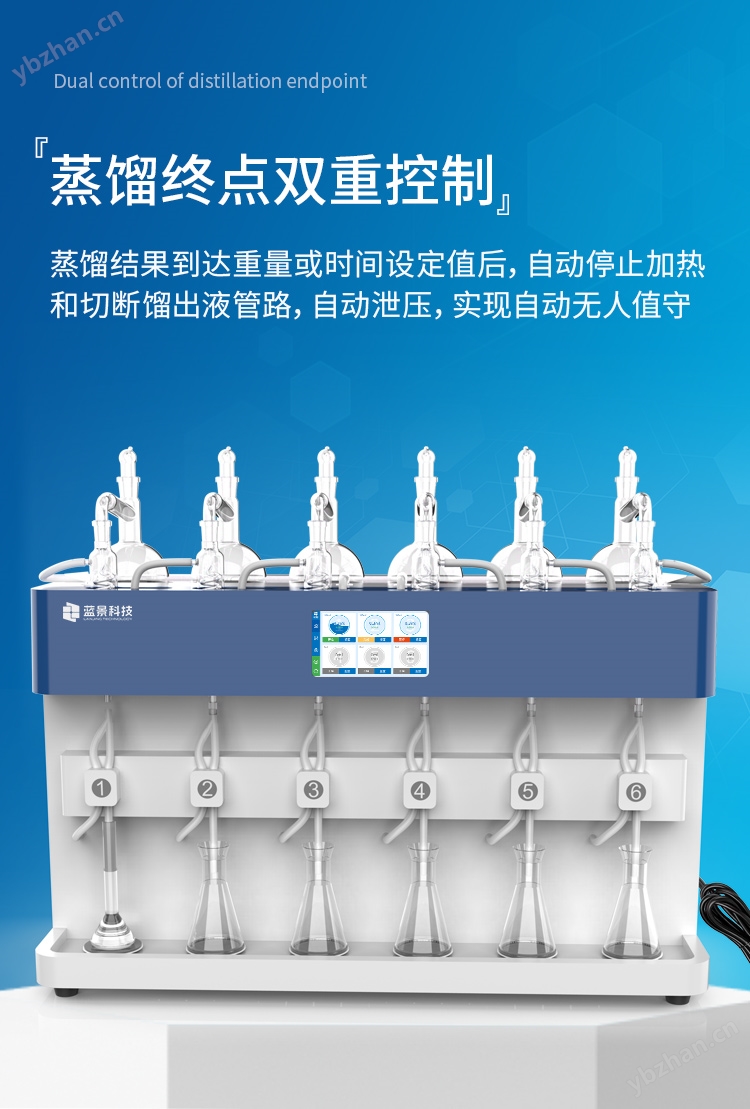 5、蒸餾終點(diǎn)控制采用時(shí)間控制模式,蒸餾結(jié)果到達(dá)時(shí)間設(shè)定值后,自動(dòng)停止加熱和切斷餾出液管路,自動(dòng)泄壓,實(shí)現(xiàn)自動(dòng)無人值守。