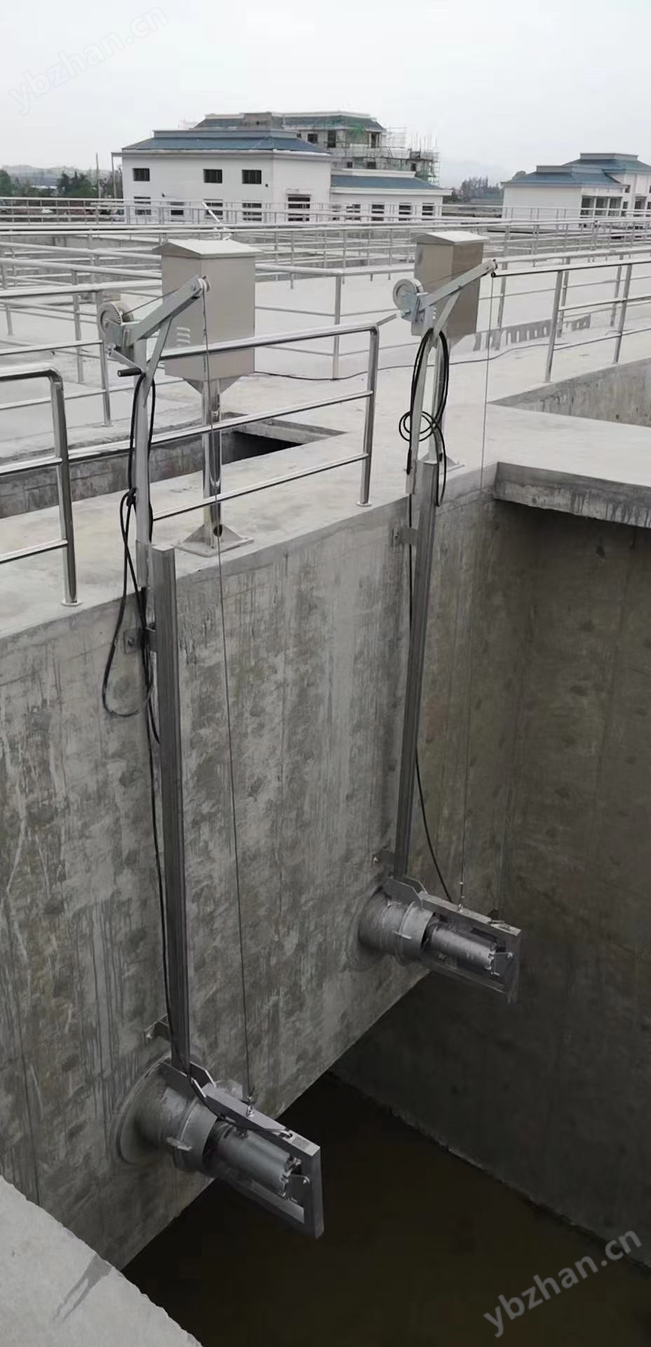 潛水水平軸流泵沿垂直導軌升降。