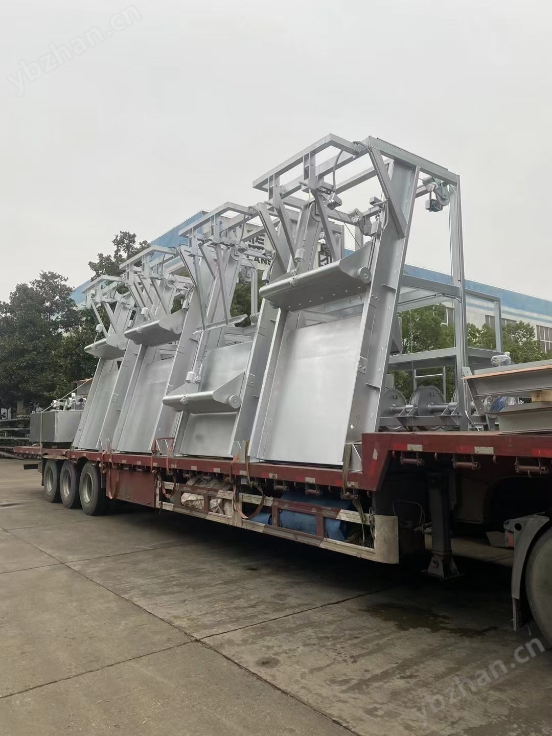 耙斗上升至卸料口時,升降電機停止。安裝在上機架的清污刮板隨耙斗上行自動將雜物刮落,排入輸送機或垃圾小車中,完成一次清污循環。隨后耙斗重新張開,準備進入下一周期 。