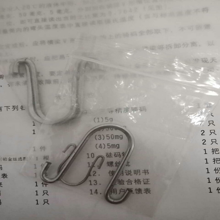 精度方面,本品嚴格遵循JJF 171-2016《液體相對密度天平》檢定規程,常見規格涵蓋5g、500mg、50mg、5mg等,不同規格騎碼的質量允差控制在合理范圍,如5g騎碼允差不超過±0.5mg,5mg騎碼允差不超過±0.06mg,可精準匹配液體比重天平的分度值要求,滿足實驗室高精度測量需求。騎碼的刃部采用弧形光滑設計,其夾角嚴格控制,不大于橫梁分度槽夾角的2/3,無不規則彎曲,避免移動時卡頓或影響平衡精度。